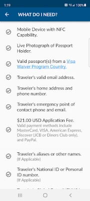 Aplikace ESTA od U.S. Customs and Border Protection umožňuje občanům zemí VWP snadno žádat a hradit cestovní autorizaci. Získejte oprávnění k cestě do Spojených států bez nutnosti víza, přímo z vašeho mobilního zařízení. Je to pohodlná mobilní varianta online procesu.