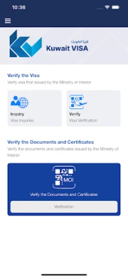 "Kuwait Visa" je mobilní aplikace Ministerstva vnitra Kuvajtu. Jejím cílem je snížit manipulaci a podvody se vstupními vízy pro cizince. Zajišťuje rychlé a přesné elektronické ověření, což umožňuje hladký průběh před nástupem do letadla a vstupem do státu Kuvajt.